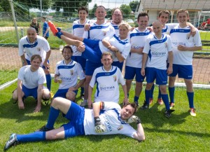 Im vorletzten Spiel rief man noch einmal alle Kräfte ab und man merkte schnell, dass der Gegner einen selbst heillos unterschätzte. Nachdem es leider nicht gelang in der Anfangsphase in Führung zu gehen, wechselte der Gegner schnell seine Fußballstars ein und seine Mädels aus. Ein unglückliches und nicht geahndetes Foul an Rainer Gutmann-Fußballgott führte dann leider zum Rückstand, auf den allerdings der Ausgleich durch Tomek Schenk folgte. Beschwingt oder doch eher beschwipst von dieser Euphorie wurde es wuselig in der Hintermannschaft und man kassierte zwei weitere Treffer ein. Dies rüttelte unsere Gruppe wieder wach und man setzte alles auf Sieg. Angriff, Vorlage Schenk, Abschluss Boris, Pfosten, Abstauber Eugen!!! Tor, Tor, Tor, das Unentschieden lag auf dem Fuß, der Ball aber nicht mehr hinter der Linie, leider! Dennoch war es eine tolle Offensivleistung!